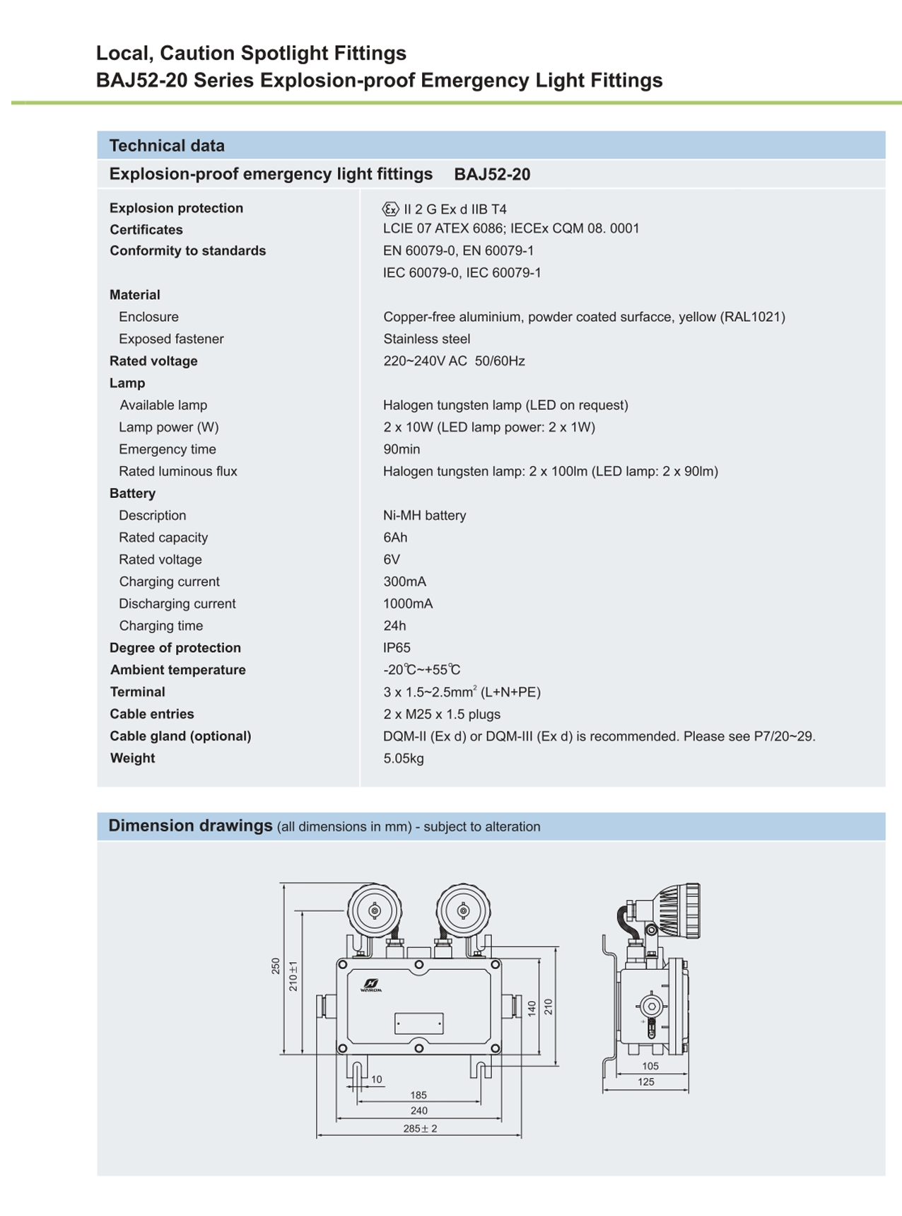 Enclosure in copper-free aluminium, powder coated surface, yellow (RAL 1021).