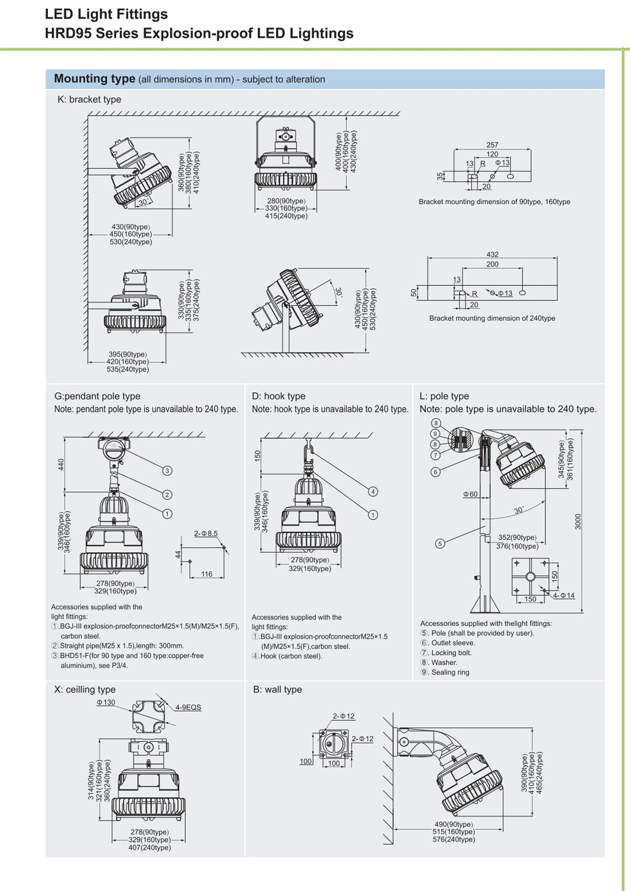 LED: 60W, 90W, 120W, 160W, 200W, 240W