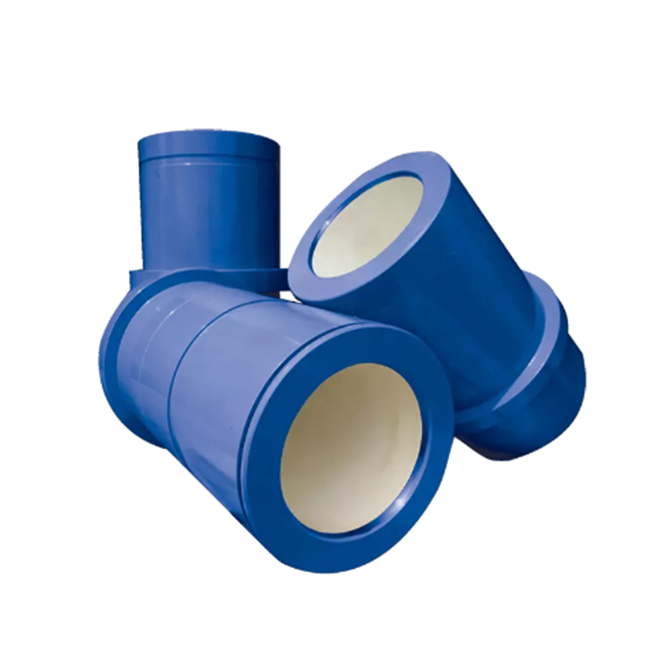 The ceramic liner is composed of two layers and fixed tightly. The outer sleeve is forged steel with abrasion resistance, the inner sleeve is ceramic.