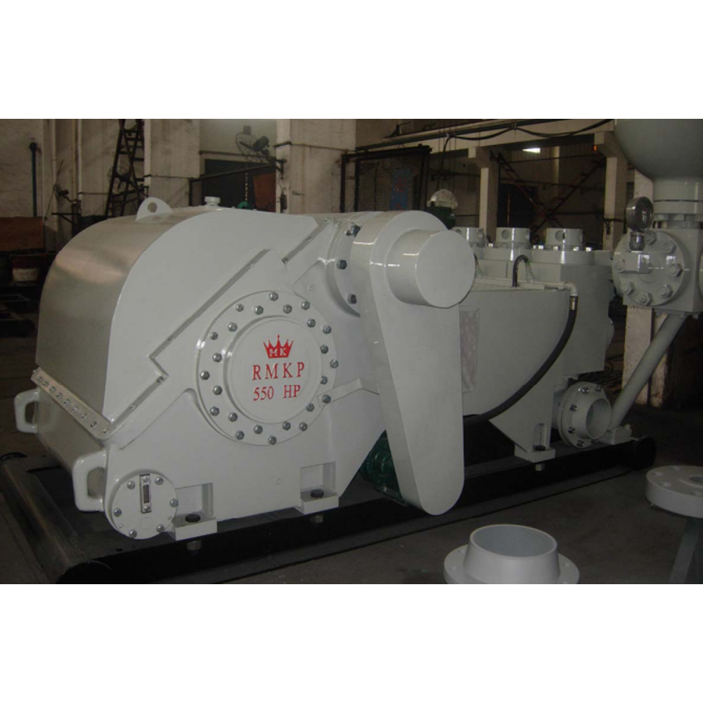 The RMKP-550 series triplex mud pumps are fully interchangeable with the equivalent OEM. Pump features a rigid steel fabricated frame with a casted suction manifold with a single front inlet or fabricated two-sided inlet. Discharge connection may be made from either side of the pump. Includes strainer block with pulsation dampener, mounted on a pony skid