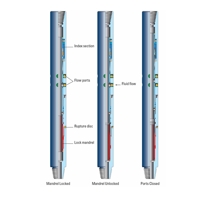 The lock module retains the mandrel in the open or closed position. When the lock is engaged, internal pressure testing can be conducted without using up cycles. The valve is also insensitive to pressure surges in the tubing or annulus, which is advantageous when locked in the open (reverse) position to automatically fill the string while running in hole.