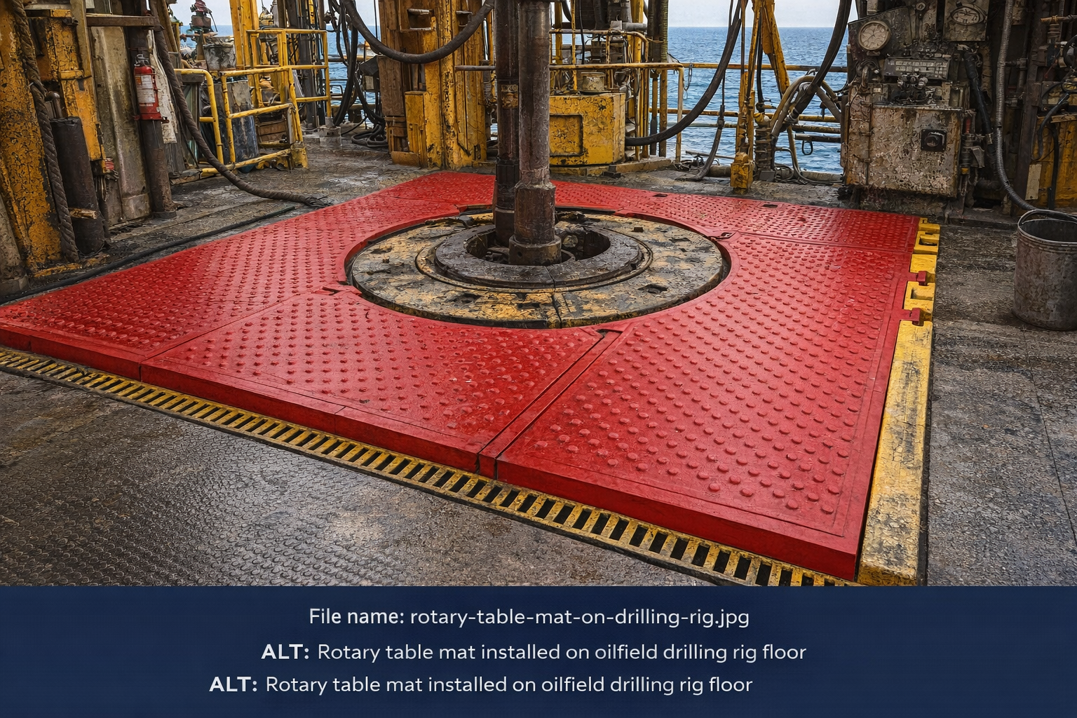 A rotary table mat is an anti-slip mat used on oilfield drilling rigs.