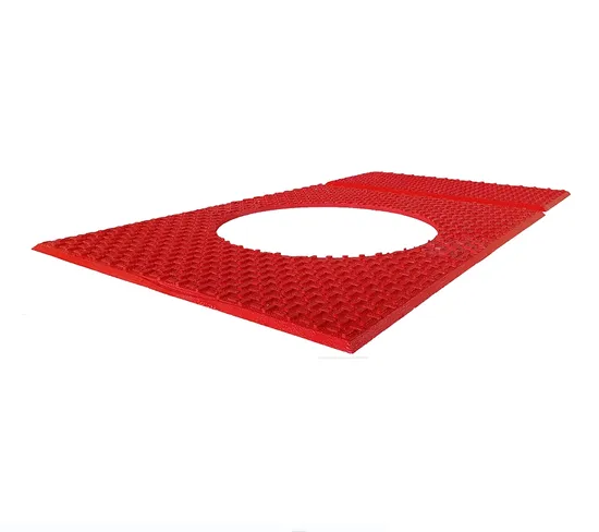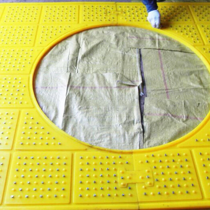 Rotary table mat made of high-quality polyurethane (PU), designed for oilfield drilling rigs to provide excellent anti-slip performance, wear resistance, and safety protection. Available in standard size 3000 × 3400 mm with 1680 mm center hole, weight ranging from 280–380 kg. Custom sizes and configurations are supported.
