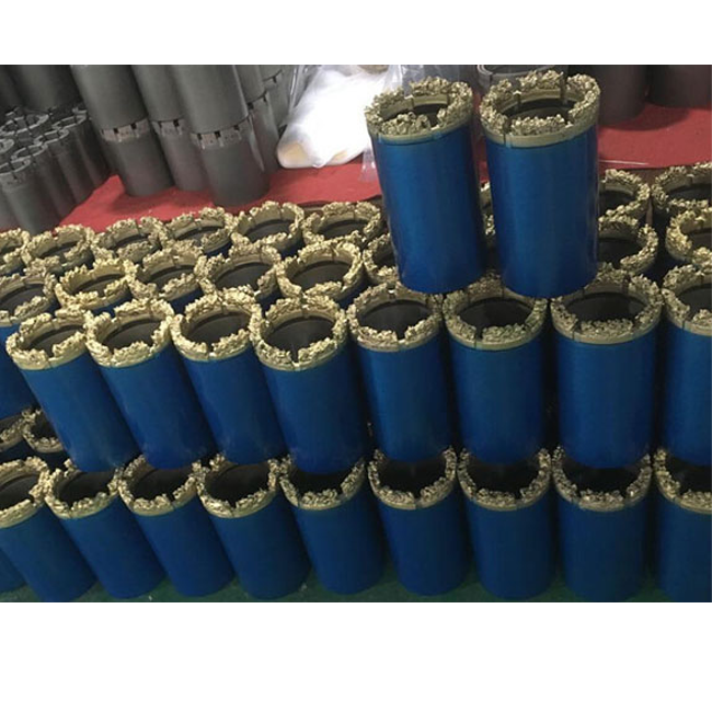These bits are set with rectangular-shaped or Octagonal-shaped tungsten carbide elements that are physically embedded into the crown of the bit.The bit crown itself is composed of a tough,wear resistant metal-bond matrix material.
