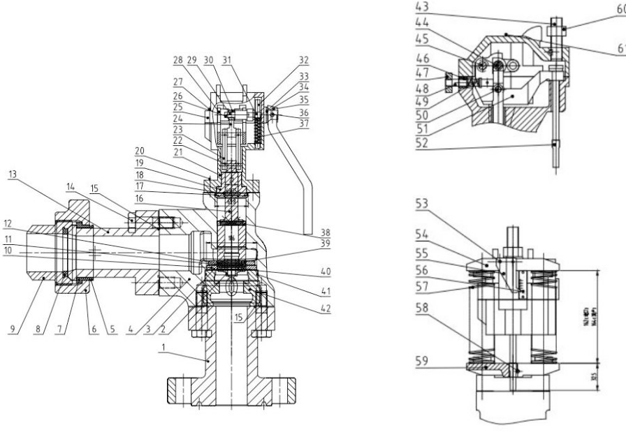 It consists of a piston, crank, linkage, and loaded spring-balanced device. The piston is designed by an internal and external piston device and Oil pressure-balanced device. It realizes auto and hand pressure release.
