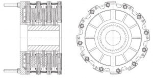 The WCB series water cooled brake is available in various sizes and quantities of friction disk assemblies. The model number identifies the number of friction disc assemblies and the nominal disc diameter. For example, WCB324 indicates three 24″ diameter discs.